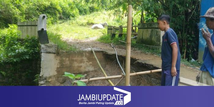 Terlihat jalan menuju Dusun Sungai Jeruang, Desa Sungai Jernih, Kecamatan Pondok Tinggi, Sungaipenuh yang sudah ambruk.