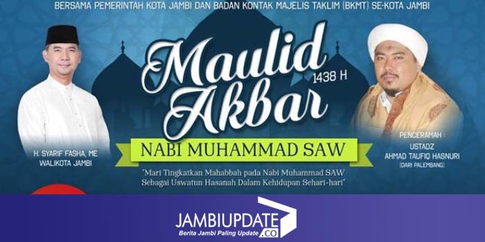 JAMBIUPDATE.CO, JAMBI - Dalam rangka memperingati Maulid Nabi Muhammad SAW, Pemerintah Kota Jambi akan mengadakan Tabligh Akbar. Tabligh akbar akan dilaksanakan, Rabu (18/1) pukul 14.00 WIB di Halaman Belakang Kantor Walikota Jambi.