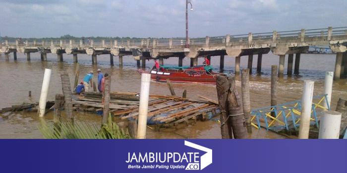 Pantauan jambiupdate.co, Jumat (3/2) terlihat pelabuhan yang terletak di Ibu Kota Kabupaten Tanjab Barat tersebut, kondisinya tinggal susunan drum plastik dan beberapa kayu penyangga diatasnya.