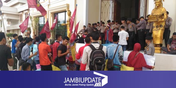 JAMBIUPDATE.CO, JAMBI Puluhan massa yang mengatasnamakan Ikatan Mahasiswa Muhamadiah (IMM), Himpunan Mahasiswa Pemuda Pemudi Batang Asai (HIMAPABA) melakukan aksi di depan Kantor Gubernur Jambi. Mereka menagih janji Gubernur Jambi pada saat kampanye lalu.