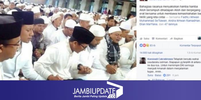 "Bahagiaa rasanya menyaksikan hamba hamba Alloh bersimpuh dihadapan Alloh dan berpegang erat bersama untuk membawa kemashlahatan bagi NKRI yang kita cintai," tulis Aa Gym yang melengkapi keterangan dari gambar yang diunggahnya enam jam yang lalu.