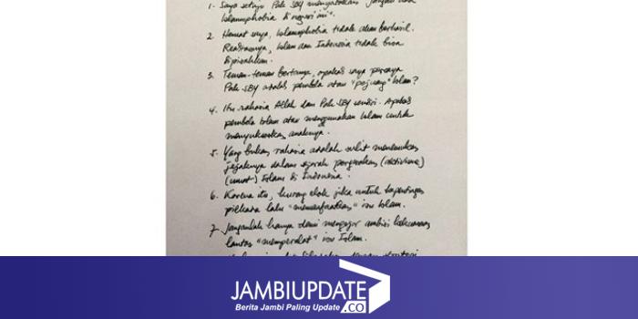 Setelahnya, admin mengupload foto hasil tulisan Anas yang ditintakan melalui selembar kertas. "Disalin dari tulisan tangan Mas Anas yg dititipkan lewat sahabat yg berkunjung kemarin. *admin," begitu caption fotonya. (uya/JPG)