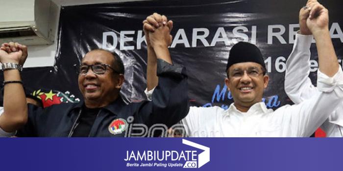 JAMBIUPDATE.CO, JAKARTA - Pasangan Calon Gubernur-Wakil Gubernur DKI Anies Baswedan-Sandiaga Uno yang diperkirakan bakal melaju ke putaran kedua mulai mendapat limpahan dukungan dari pendukung Agus Harimurti Yudhoyono-Sylviana Murni. Salah satunya adalah relawan Komite Nasional Masyarakat Indonesia (KMNI) pimpinan Alex Asmasoebrata.