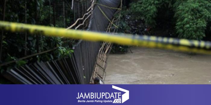JAMBIUPDATE.CO, SAROLANGUN - Sejak dua hari terakhir anak- anak siswa Sekolah Dasar (SD) di Desa Raden Anom, Kecamatan Batangasai, Kabupaten Sarolangun, harus bertaruh nyawa untuk berangkat ke sekolah. Pasalnya, mereka harus melewati jembatan gatung yang tiba-tiba bisa saja putus, karena tiang jembatan sebagai penahan tali seling sudah ambruk.