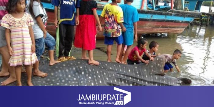 Ketika akan dilepaskan dari jaring pukat di daratan, ikan hiu paus itu sudah dalam keadaan mati, kata Wahyudi, Kepala Dusun Nahoda, Desa Kuala, Sabtu (25/2).