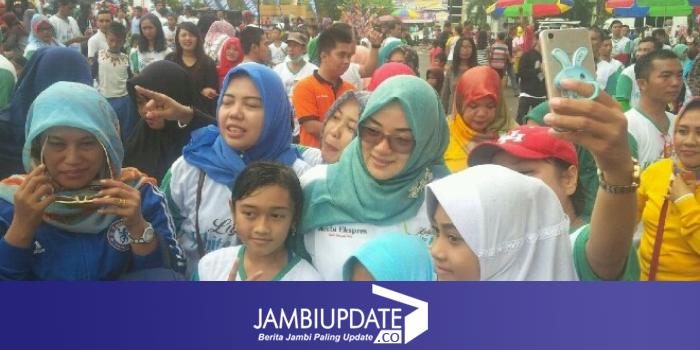 JAMBIUPDATE.CO, JAMBI - Tidak hanya Walikota Jambi, Sy Fasha, yang diajak foto selfie oleh peserta senam massal Jambi Ekspres, Minggu (12/3).