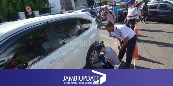 Kita kempeskan ban mobilnya, karena tadi kami mencari pemilik mobil, tetapi tidak ditemukan. Sehingga kita kempeskan mobilnya, ujar Zainal, Kabid Operasional Dinas Perhubungan Kota Jambi.