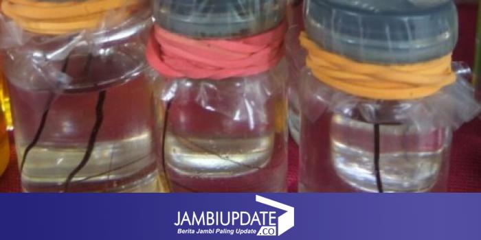 iklan Sepasang bulu perindu dikemas dalam botol yang berisi minyak, diyakini bisa menimbulkan sugesti positif, baru-baru ini. Foto: AZUBA/KALTENG POS/JPNN.com