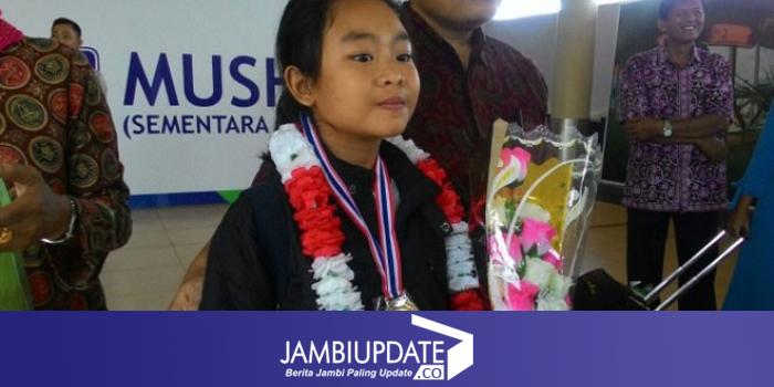 Kepulangan Inez dari Thaland di sambut oleh pihak keluarga, Kepala Sekolah dan juga PLT Dinas Pendidikan Kota Jambi. (aiz)