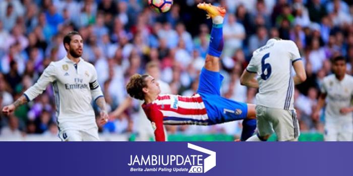 iklan Antoine Griezmann saat beraksi dalam Derby Madrid. Foto: uefa