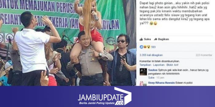 Di dalam doto itu polisi tampak menggendong biduan berambur pirang dan sedang bernyanyi. Sementara di sampingnya ada seorang pelawak Simson Rarameha atau biasa dikenal Temon.