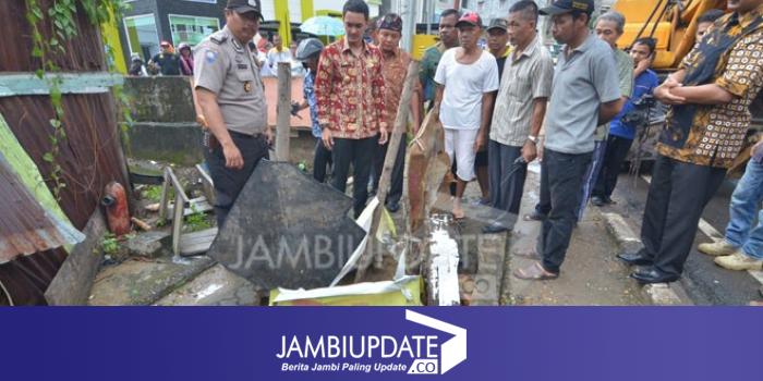 JAMBIUPDATE.CO, JAMBI - Drainase di kawasan Kelurahan Payo Lebar, Kecamatan Jelutung, Kota Jambi terjadi penyempitan yang diakibat adanya bangunan pagar ruko yang ambruk. Pagar itu pun dibongkar karena menjadi penyebab terjadinya banjir di kawasan itu.