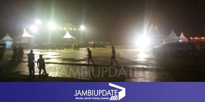Pantauan jambiupdate.co di lapangan, sekitar pukul 21.10 WIB, pelaksanaan konser juga belum dimulai. Penonton banyak berteduh di pinggir-pinggir tribun stadion. (amn)