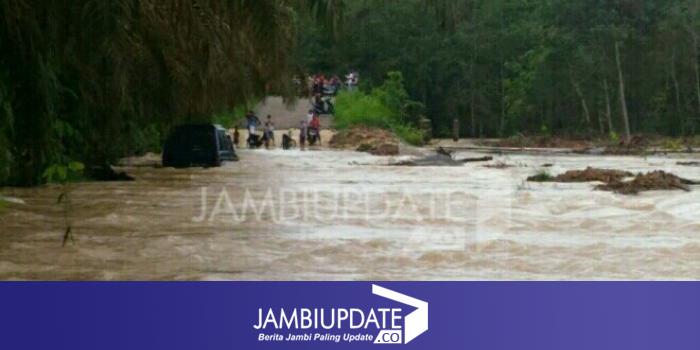 JAMBIUPDATE.CO, MERANGIN - Hujan deras yang mengguyur Kabupaten Merangin membuat Jalan Poros penghubung Desa Lantak Seribu dan Desa Tambang Emas Kec.Pamenang Selatan putus akibat di terjang air, bahkan rumah warga di desa tersebut masih terendam.