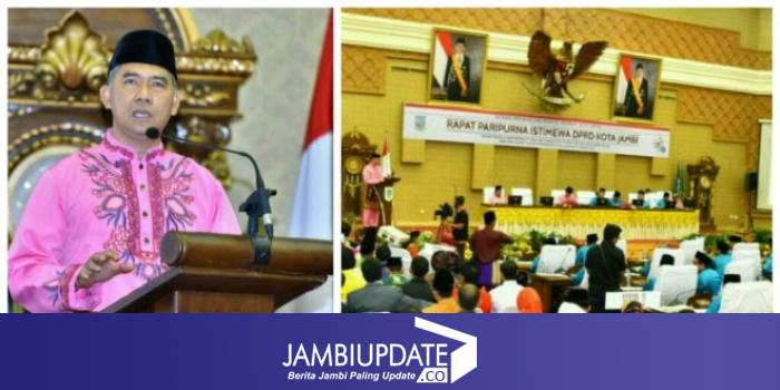 JAMBIUPDATE.CO, JAMBI - Puncak Peringatan HUT Pemerintah Kota Jambi ke 71 dan Hari Jadi Tanah Pilih Pusako Batuah Kota Jambi ke-616 dilaksanakan dengan Rapat Paripurna Istimewa DPRD Kota Jambi yang berlangsung khidmat Rabu pagi (17/5).