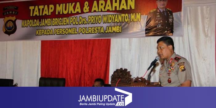Kapolda Jambi Brigjen Pol Priyo Widyanto saat memberikan arahan kepada personel Polresta Jambi.