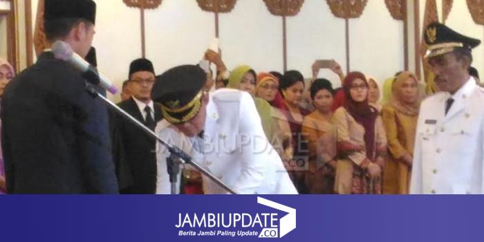 JAMBIUPDATE.CO, JAMBI - Sukandar-Syahlan, Senin (22/5), resmi dilantik sebagai Bupati dan Wakil Bupati Tebo oleh Gubernur Jambi Zumi Zola.