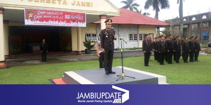 Upacara dihadiri Wakapolresta Jambi, AKBP Sri Winugroho, para Kabag, Kasat, Kasi, Kapolsek serta personil, ASN Polresta Jambi dan jajarannya. (pds)