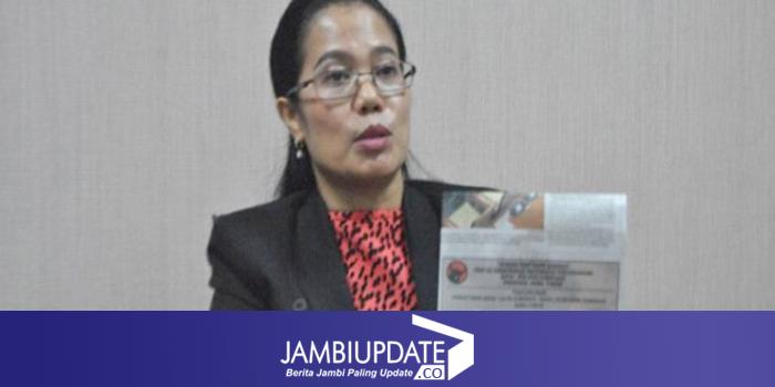 Sekretaris DPD PDIP Jatim, Sri Untari, Menunjukan iklan pendaftaran bacagub / bacawagub PDIP. Foto : JPNN
