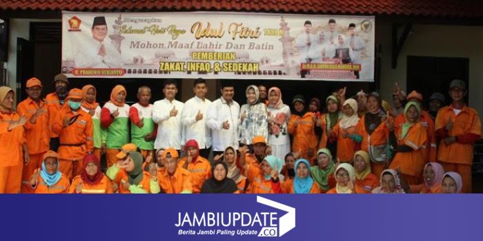 Seperti ketika Ketua DPD Partai Gerindra Provinsi Jambi tersebut membagikan zakat pada penyapu jalan dan porter bandara.