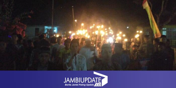 Pantauan Jambi Update.co, kegiatan tersebut yang dimulai sejak puk 20.00 WIB, para warga tak hanya didominasi remaja dan anak-anak, namun para orang-orang dewasa untuk melakukan takbir jalan kaki keliling kampung.