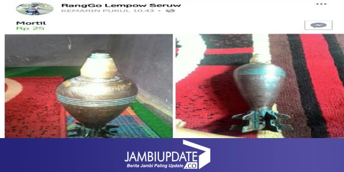 JAMBIUPDATE.CO, JAMBI- Jambi dihebohkan dengan akun Facebook (FB) atas nama Ranggo Lempow Seruw. Pemilik akun tersebut secara terang-terangan menjual mortir yang baru saja ditemukanya di sebuah ladang miliknya.