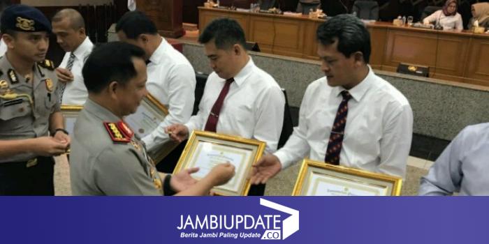 JAMBIUPDATE.CO, JAMBI - Satuan Tugas (Satgas) Pangan Provinsi Jambi meraih prestasi yang membanggakan, yakni masuk 10 besar terbaik nasional. Piagam penghargaan diberikan oleh Menteri Pertanian Republik Indonesia, Dr.Ir.H. Andi Amran Sulaiman dan Kapolri, Jenderal Polisi Tito Karnavian, Ph.D kepada Dirreskrimsus Polda Jambi, Kombes Pol.Winarto,SH,MH selaku Ketua Bidang Penindakan dan Penegakan Hukum Satgas Pangan Provinsi Jambi, bertempat di Rupatama Mabes Polri, Jakarta, Rabu (5/7) sore.