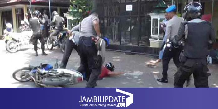 Meski telah diadang dan diberi tembakan peringatan, pelaku masih tetap memacu motornya.