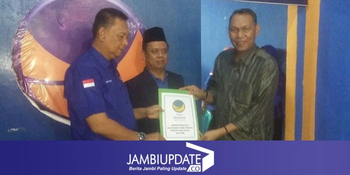 JAMBIUPDATE CO, JAMBI - Calon petahana Sy Fasha yang akan bertarung di Pilwako Jambi 2018, mengambil formulir penjaringan kandidat di DPD NasDem Kota Jambi, Selasa (18/7).