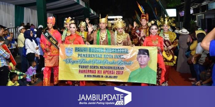 Tidak mau ketinggalan, iringan karnaval Kota Jambi pun ikut ambil bagian pada Pawai Budaya Nusantara kali ini. Kota Jambi sendiri, menurunkan potensi keragaman budaya dan kesenian yang ada di Kota Jambi, diantaranya tarian persembahan, tarian tengkuluk, kesenian musik, dan parade pakaian adat Kota Jambi oleh seluruh Camat di Kota Jambi, dan parade Bujang Gadis Kota Jambi.