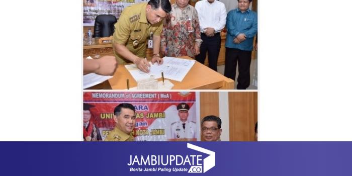 Bertempat di ruang Rapat Senat, Gedung Rektorat, Universitas, Senin (24/7), ditandatangani Memorandum of Understanding (MoU) dan Memorandum of Agreement (MoA) antara Wali Kota Jambi Syarif Fasha dengan Rektor Universitas Jambi Johni Najwan.