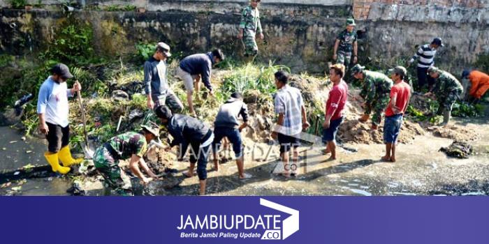 Jumat (28/7) Pemerintah Kota Jambi bekerjasama dengan TNI melakukan normaslisasi aliran drainase di Kelurahan Lebak Bandung, Kecamatan Jelutung, Kota Jambi.