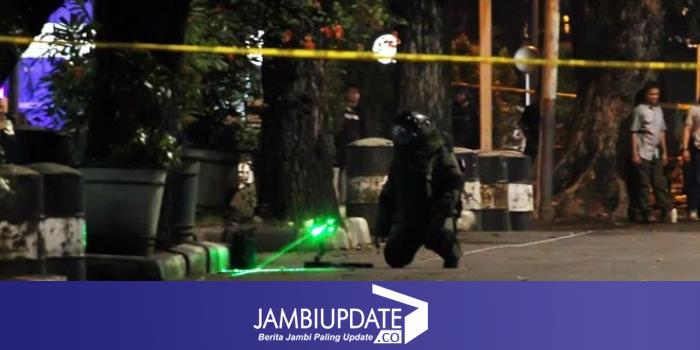 Tim Gegana Jihandak menjinakkan benda diduga bom di depan Mabes Polri, Jumat (30/6). (Dery Ridwansyah/Jawa Pos)