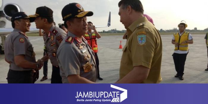 JAMBIUPDATE.CO, JAMBI - Walikota Jambi, Jumat (4/8) sore ikut menyambut kedatangan Kapolri, Jenderal Polisi Tito Karnavian di Bandara Sultan Thaha Jambi.