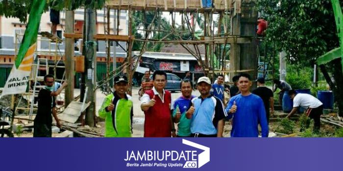 JAMBIUPDATE.CO, JAMBI-Warga RT 49 Kenali Asam Bawah, Kota Baru, Jambi pagi in (6/8) kembali menggelar gotong royong lanjutan pembangunan Gapura di jalan utama ke RT tersebut.