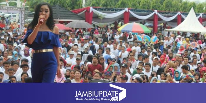 JAMBIUPDATE.CO, JAMBI - Setelah lama ditunggu oleh peserta Jalan Sehat yang diselenggarakan PT Angkasa Pura II (Persero) cabang Bandara Sultan thaha Jambi, dan berlokasi di eks kantor Bandara Lama akhirnya hadir sekitar pukul 10.45 WIB. Cita-Citata langsung membawakan lagu  Merindukan Kasih Sayang (Meriang).