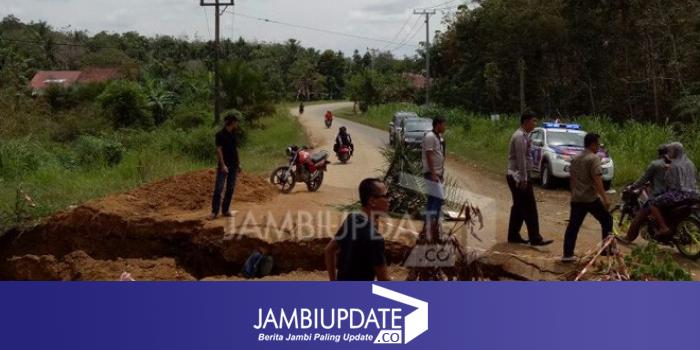 JAMBIUPDATE.CO, MUARATEBO - Akibat diguyur hujan yang cukup deras dalam beberapa hari ini, Badan Jalan Tebo -Rimbo yang tepatnya di Jalan Pendawa RT 1 Desa Purwoharjo Kecamatan Rimbo Bujang Kabupaten Tebo, Minggu (13/8) amblas.