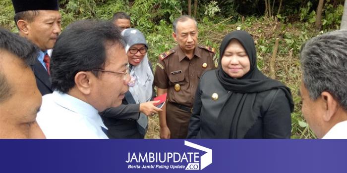 JAMBIUPDATE.CO, SENGETI - Bupati Muarojambi Hj Masnah Busro SE membawa Kepala Kemenkum Ham Jambi Bambang Palasara meninjau Lokasi tanah Pemkab yang akan dihibahkan menjadi Lembaga Pemasyarakatan (LP) yang akan dibangun 2018 nanti.