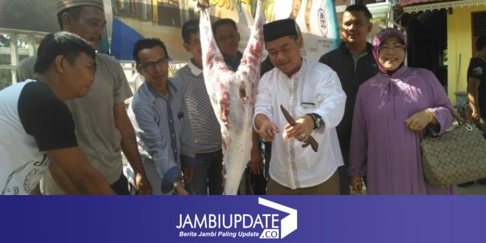 Minggu (3/9), 1 ekor sapi dan 1 ekor kambing dipotong bertempat di halaman kantor Gapensi Kota Jambi di Keluharan Handil Jaya, Kecamatan Jelutung, Kota Jambi.