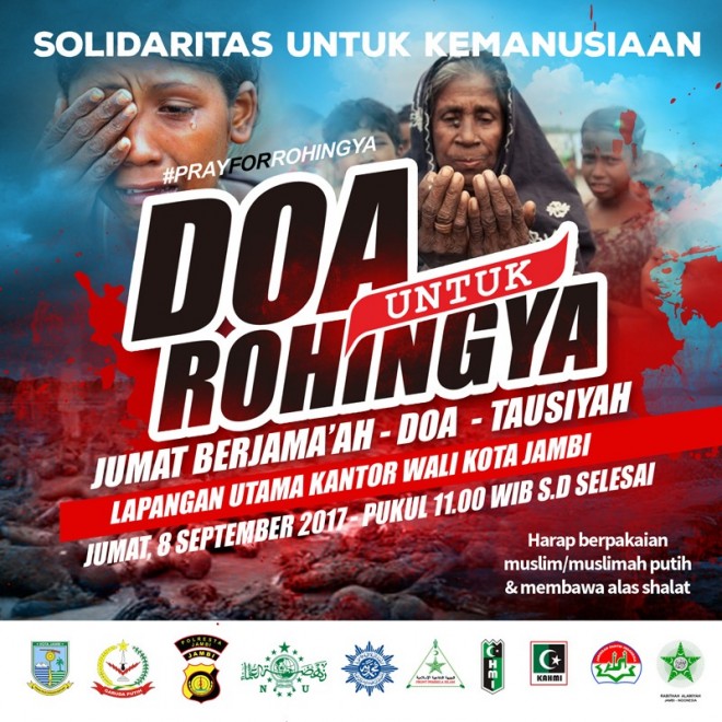 Wali Kota Jambi melalui Kepala Bagian Humas Setda Kota Jambi Abu Bakar, mengatakan kegiatan yang bertajuk Jumat Berjamaah dan Doa Untuk Rohingya itu dilakukan sebagai bentuk solidaritas dan aksi nyata atas tragedi kemanusiaan tersebut. Selain menunaikan shalat Jumat berjamaah yang juga diiringi dengan qunut nazilah serta doa bersama untuk keselamatan warga muslim Rohingya, pada acara itu juga direncanakan akan dilakukan penggalangan dana kemanusiaan.