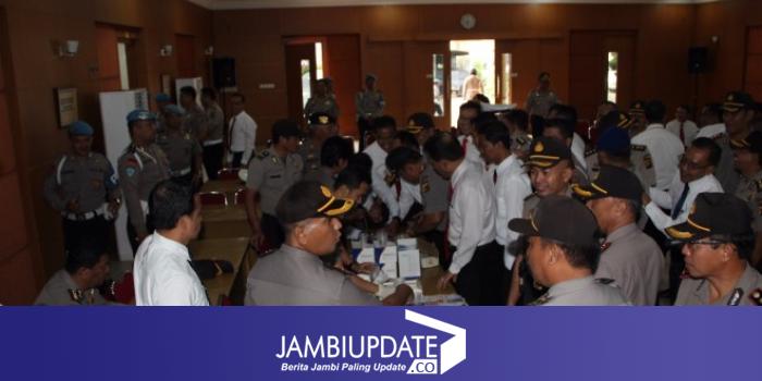 JAMBIUPDATE.CO, JAMBI Polda Jambi, Senin (25/9) kembali melakukan pemeriksaan urine secara mendadak. Kali ini, seluruh perwira berpangkat AKBP yang dites. Ini dilaksanakan di gedung Siginjai Polda Jambi.