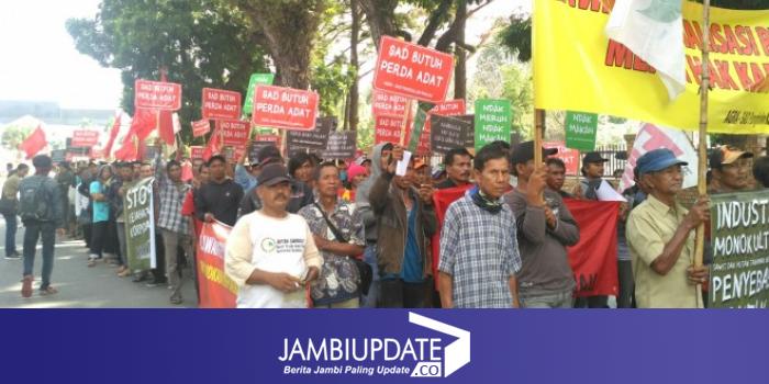 JAMBIUPDATE.CO, JAMBI - Ratusan petani yang berasal di Provinsi Jambi, menggelar aksi di sekitaran kawasan kantor gubernur Jambi, Senin pagi (25/9).