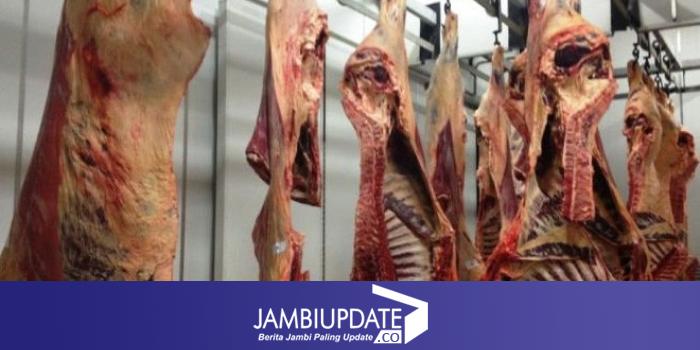 Sementara, di antara daging-daging itu, terlihat dua pria bermasker yang sedang bekerja seperti tengah memotong-motong daging.