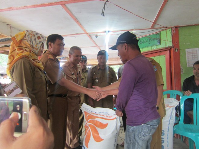 Penyerahan bantuan dihadiri oleh Sekda Merangin yang diwakili oleh kadis Ketahanan Pangan Merangin Slamet Sudarsono, Camat Muara Siau Suardi dan Kades Pulau Raman Syafrizal.