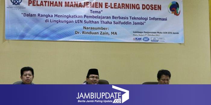 JAMBIUPDATE.CO, JAMBI - Dalam rangka melanjutkan program peningkatan mutu pembelajaran dengan pendekatan teknologi informasi yang sudah berjalan selama tiga tahun, maka Lembaga Penjaminan Mutu (LPM) UIN STS Jambi menggelar Pelatihan Managemen Elearning Dosen pada Jumat (27/10) di Hotel Ratu.