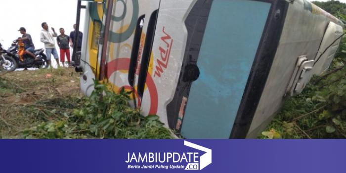 JAMBIUPDATE.CO, MUARATEBO - Bus NPM jurusan Padang -Jambi dini hari tadi (18/11) sekitar pukul 02.00 Wib terguling di Desa Sungai Keruh Kecamatan Tebo Tengah.