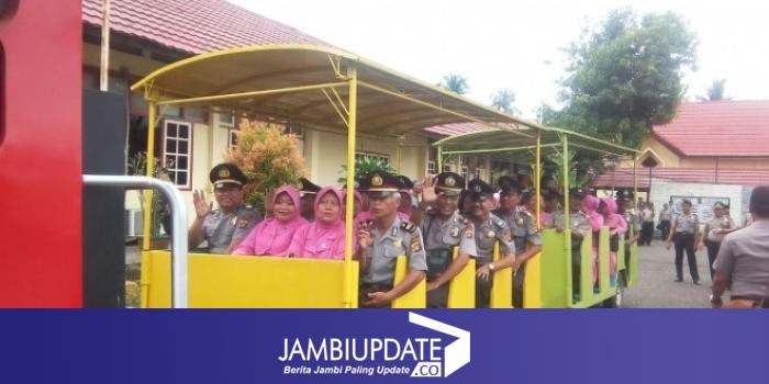 Para pensiunan juga diarak menggunakan odong odong mulai dari halaman Mapolresta Jambi, dikawal langsung oleh anggota Lantas. (pds)