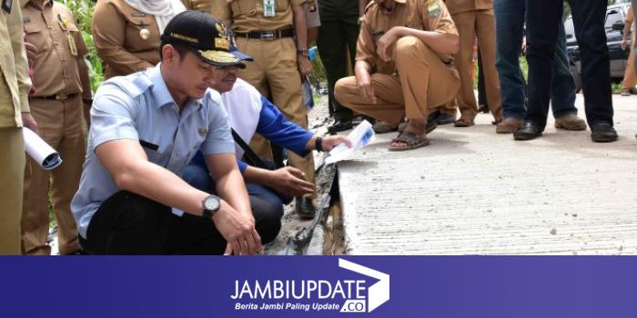 JAMBIUPDATE.CO, JAMBI - Gubernur Jambi H. Zumi Zola, didampingi Pelaksana Tugas (Plt) Kadis PUPR Provinsi Jambi H. Arfan meninjau pembangunan jalan Desa Betung Kecamatan Kumpeh Ilir, Selasa (28/11).
