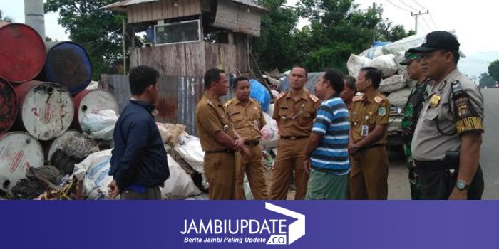 Lurah bersama Babinsa dan Bhabinkamtibmas saat sidak di tempat rongsokan. Pihak kelurahan meminta agar barang rongsokan tidak mengganggu pengguna jalan.