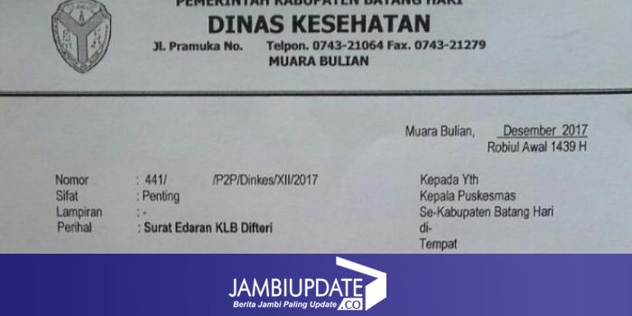 JAMBIUPDATE.CO, MUARABULIAN - Dinas kesehatan kabupaten batanghari saat ini tengah mewaspadai penyakit difteri yang akan mengancam keselamatan warga kabupaten batanghari.